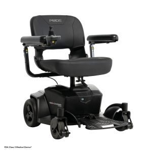 The Regal can support up to 300 lbs. and features a seat width of up to 20″. With its 10″ rear and 8″ front foam-filled tires, it offers excellent stability and support. It travels as speeds of 5 mph and can last up to 18 miles on a single charge, making it an excellent option for a full-size power wheelchair.